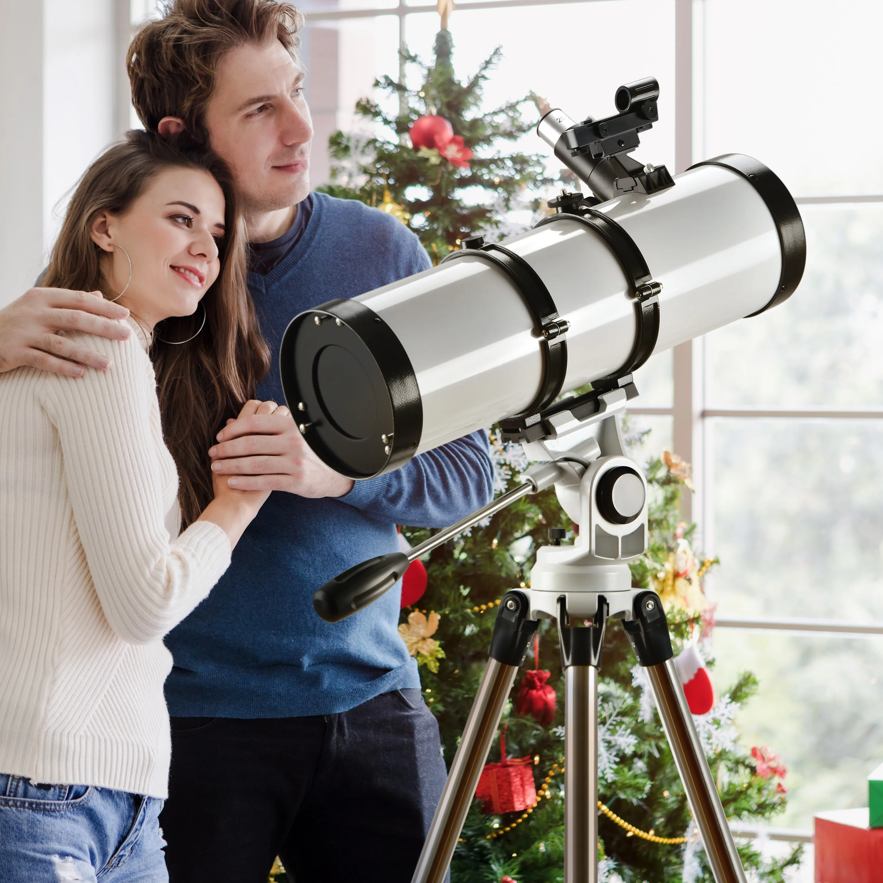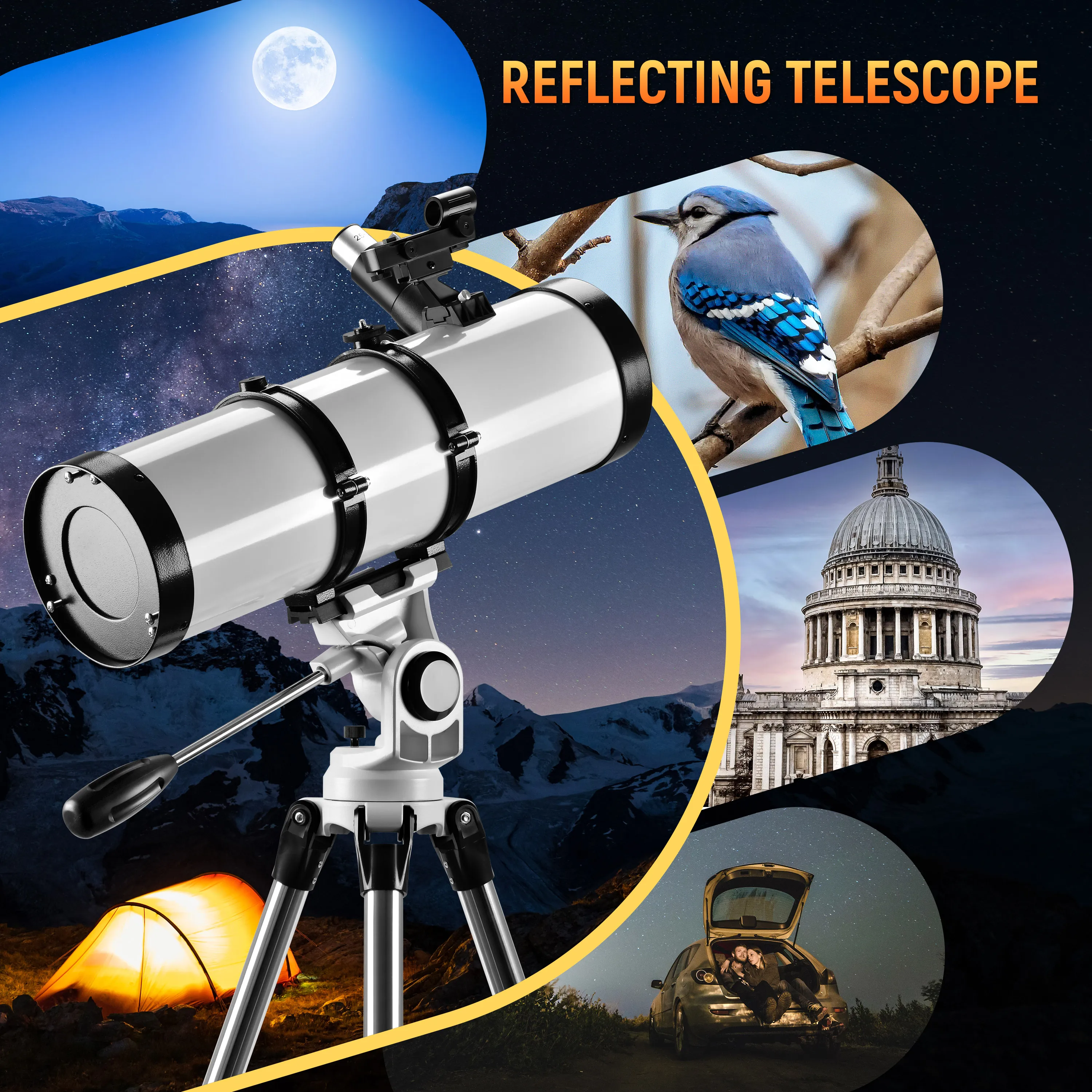130mm Reflector Telescope with Upgrade Stainless Steel Tripod Mobile Holder Stargazing APP Max 130X for Moon Watching