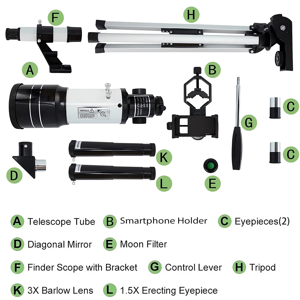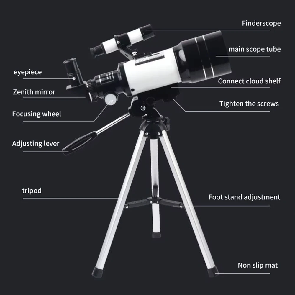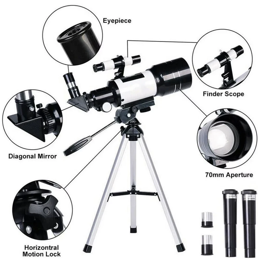 150X Astronomical Telescope , 70mm Aperture Refractor Portable Travel Telescope with Phone Adapter &Wireless Remote