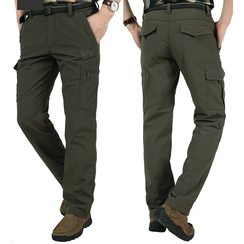 2024 Outdoor Work Tactical Pants Men Winter Casual Cargo Trousers Waterproof Fleece-lined Pant Elastic Hiking Traveling Workwear