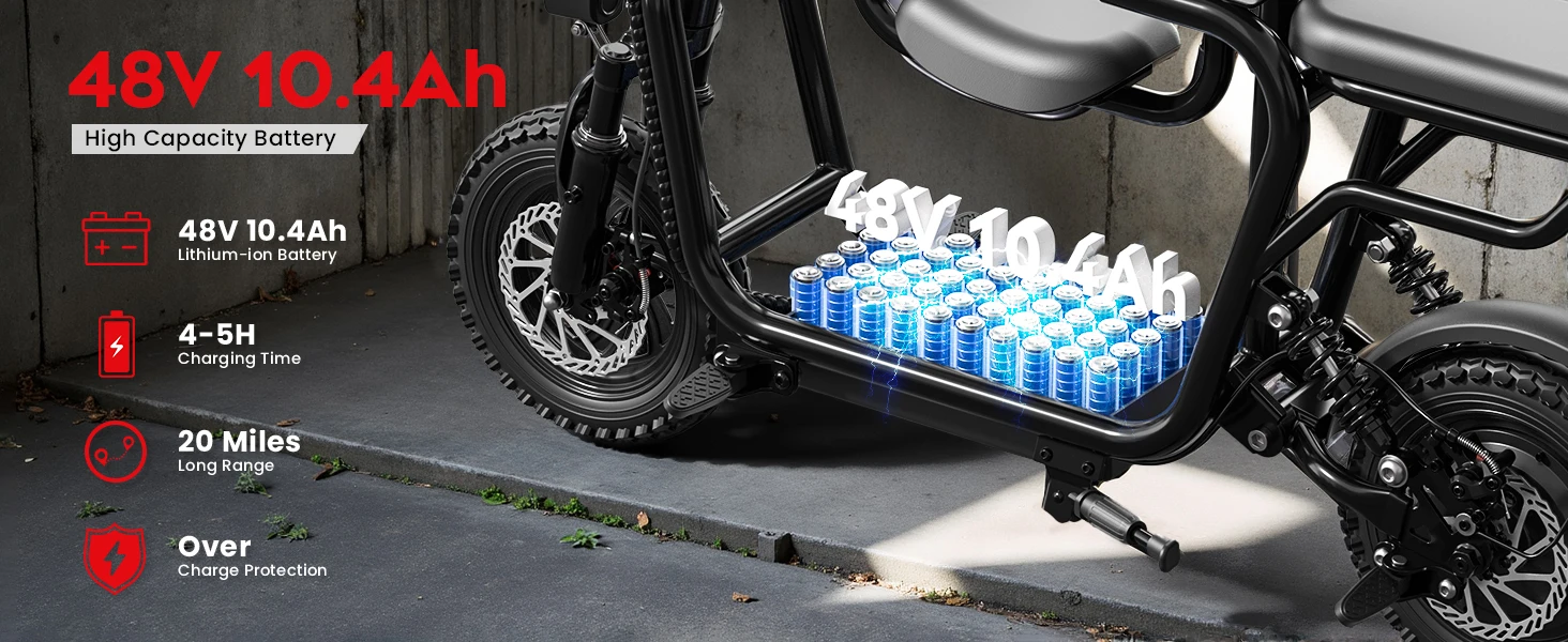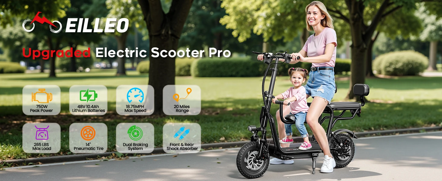 High Performance: Powered by a 750W brushless motor and 48V 10.4Ah high capacity battery, the EILLEO electric scooter reaches speeds up to 18.75 mph and delivers a maximum range of 20 miles.