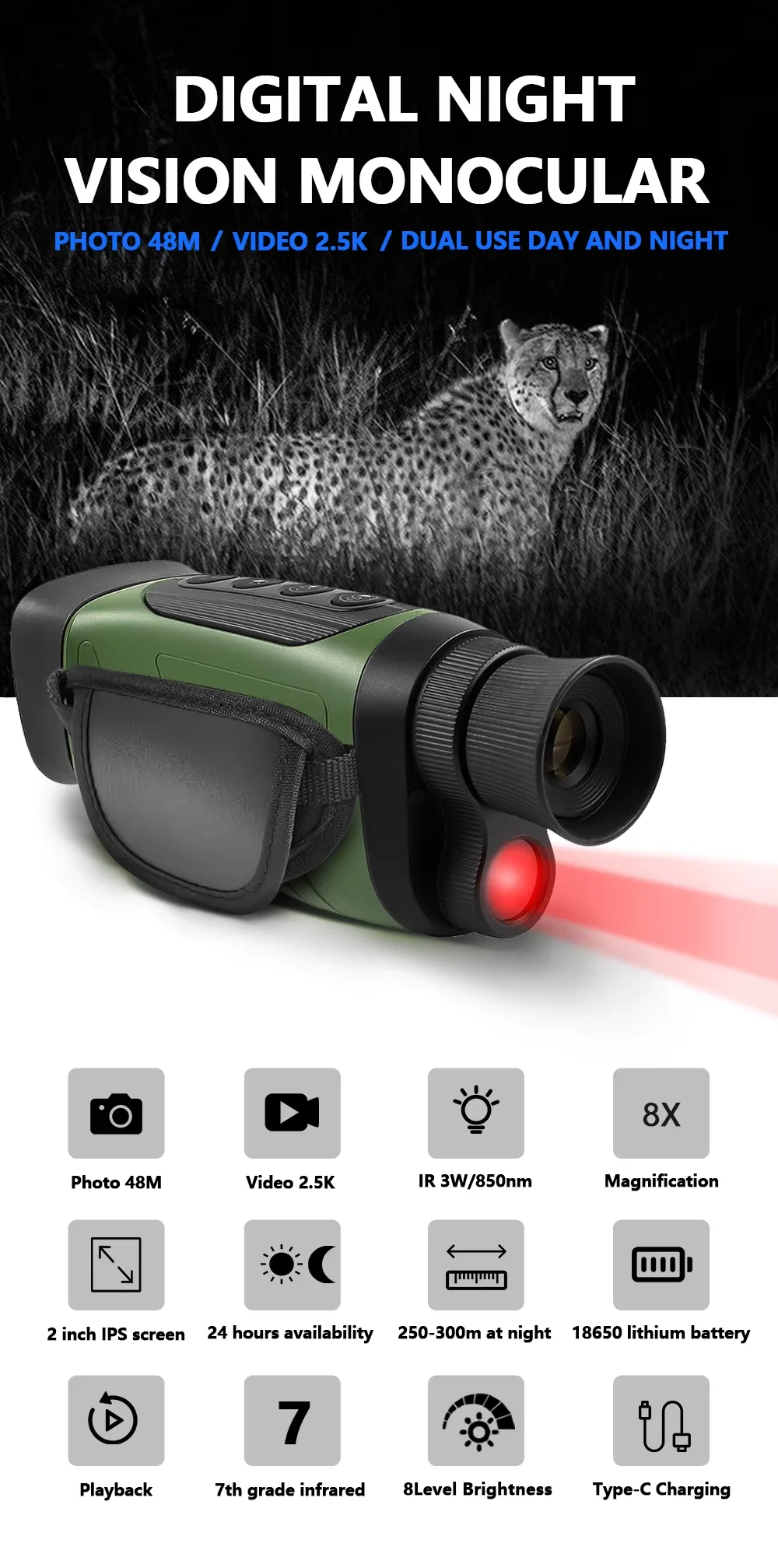 6X Optical Magnification Night Vision Goggles-2.5K Night Vision Monocular with 850nm IR LED for Camping & Security, Gift for Men