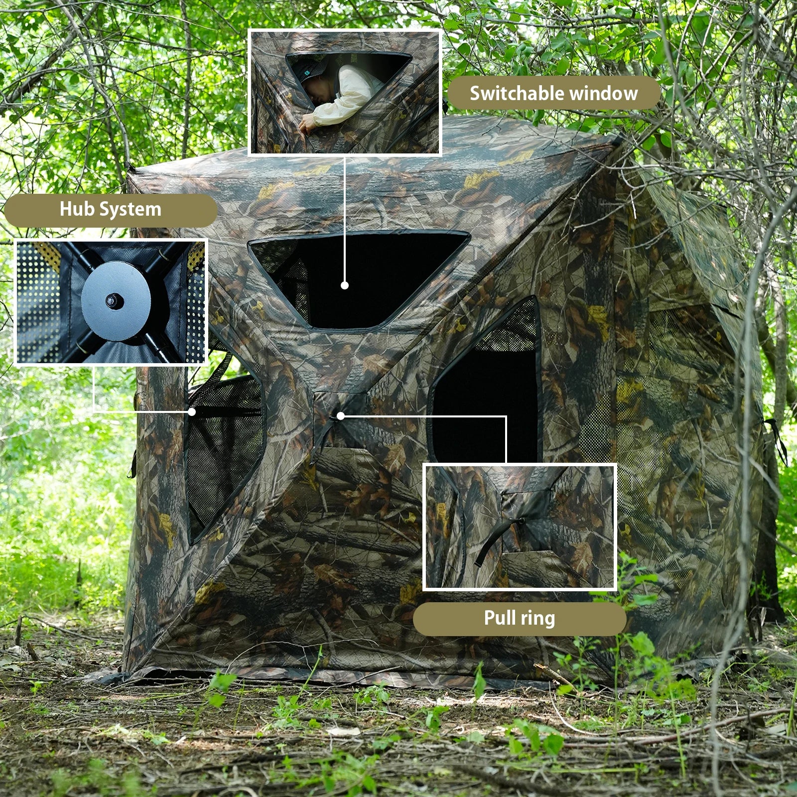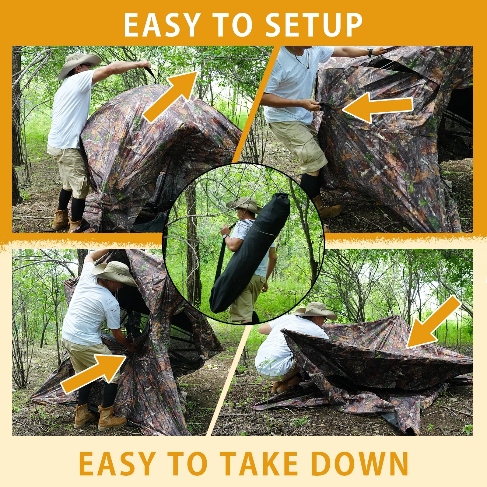 All-Terrain 360° See-Through Hunting Blind, Camouflage Pop-Up Tent for 2-3 Persons with Carry Bag