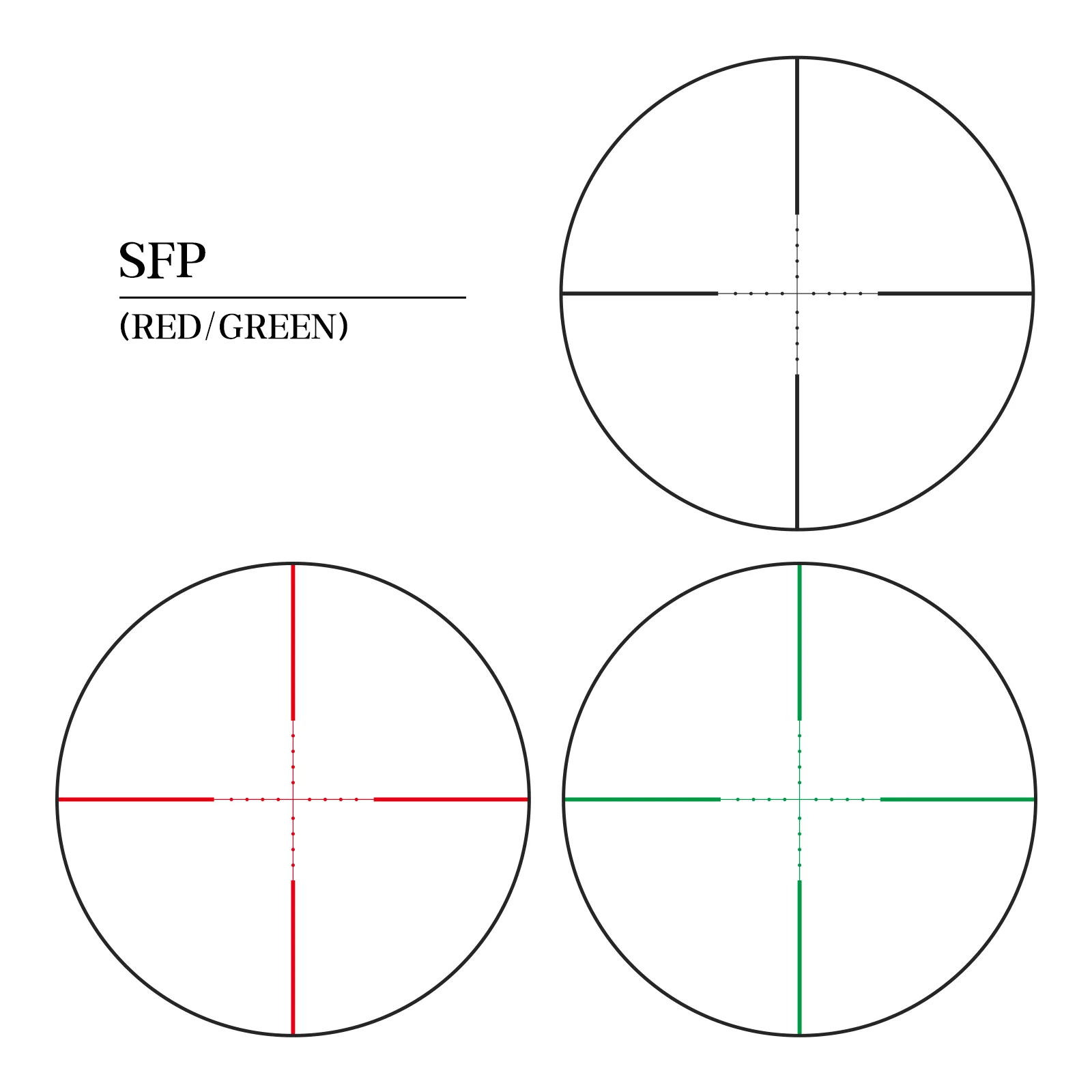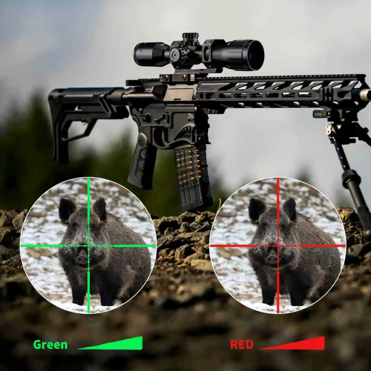 Red & Green Illuminated Reticle – Multiple brightness levels