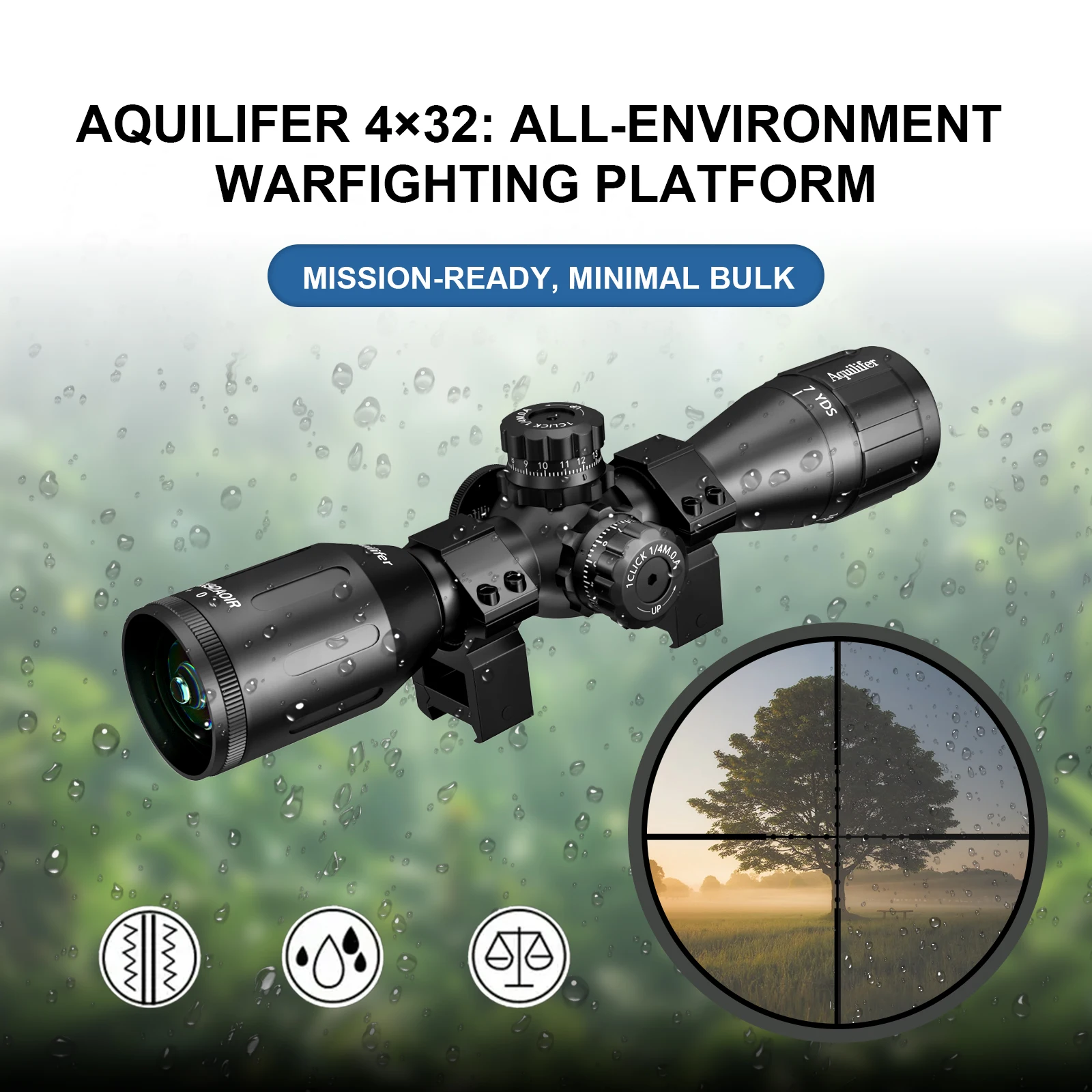 Aquilifer 4x32 AO Hunting Scope 295g Zero Stop for 22LR Rimfire Air Rifle Airgun with Free Scope Rings Lifetime Warranty