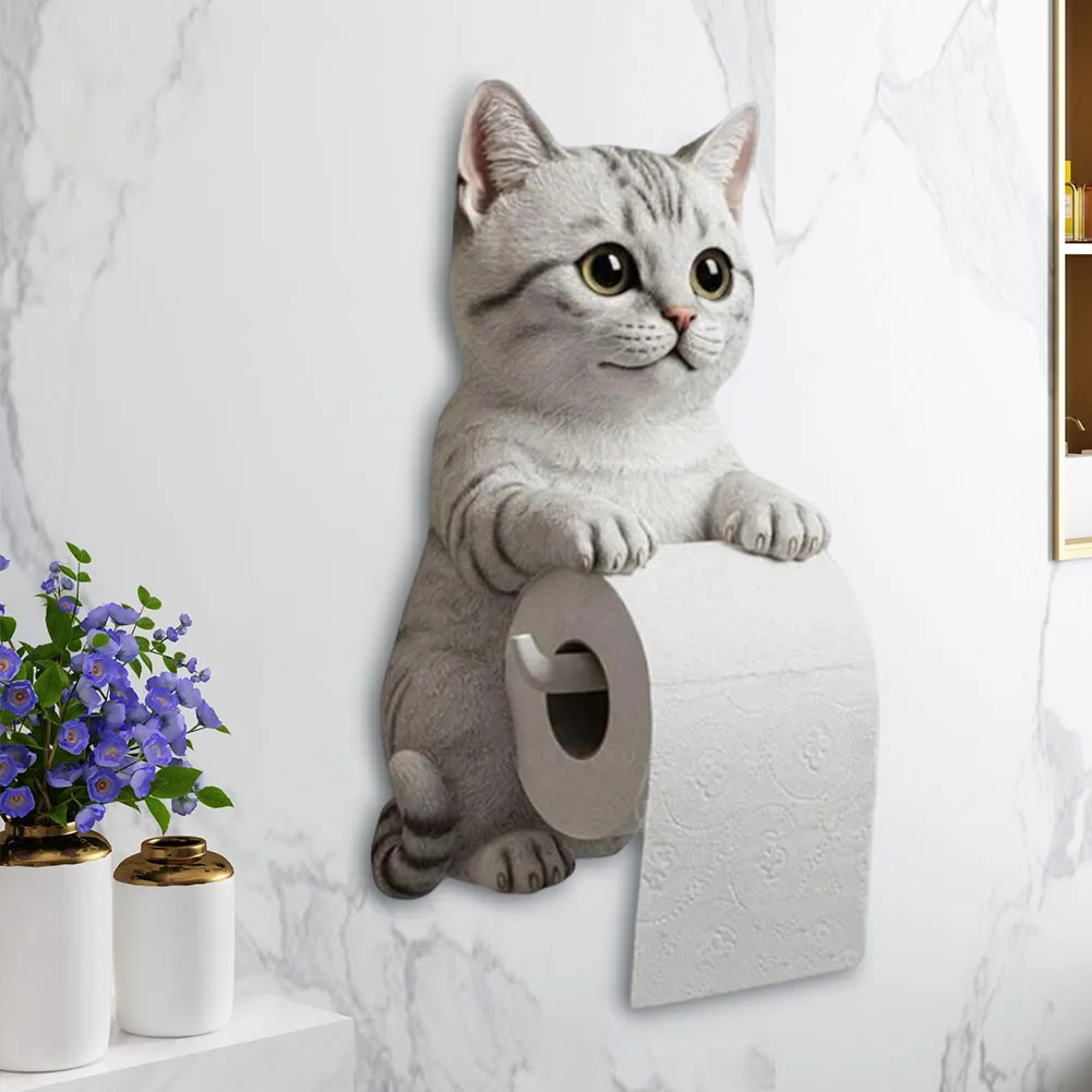 Cat Toilet Paper Holder Cat Toilet Roll Holder Wall Mounted Roll Rack Cute Dispenser for Dorm Home RV Restroom Travel Kitchen