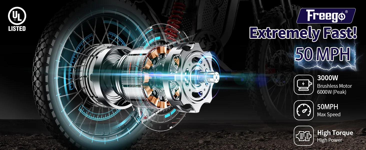 Freego X2 Electric Dirt Bike for Adults 6000W Motor 60V/30Ah Battery 50MPH Electric Motorcycle 19 x2 Tire Full Suspension E-Bike