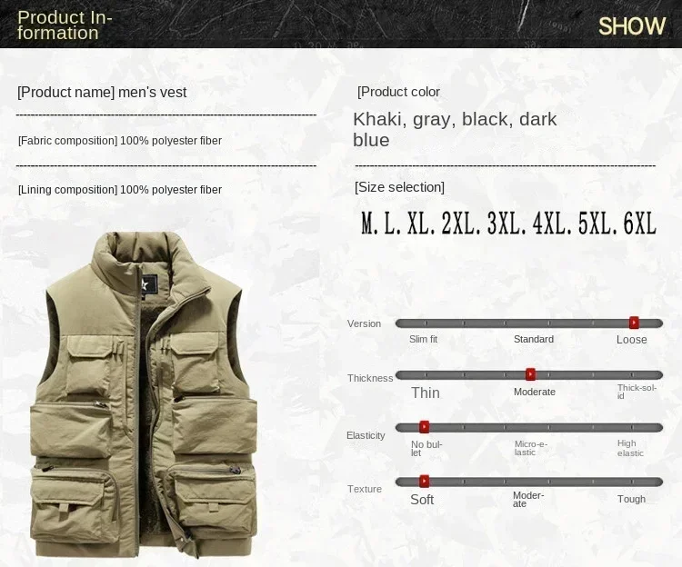 Men's New Keep Warm Fleece Work Sleeveless Jacket Slim Fit Windbreaker Fashion Many Pocket Jacket Men Winter Sleeveless Jackets