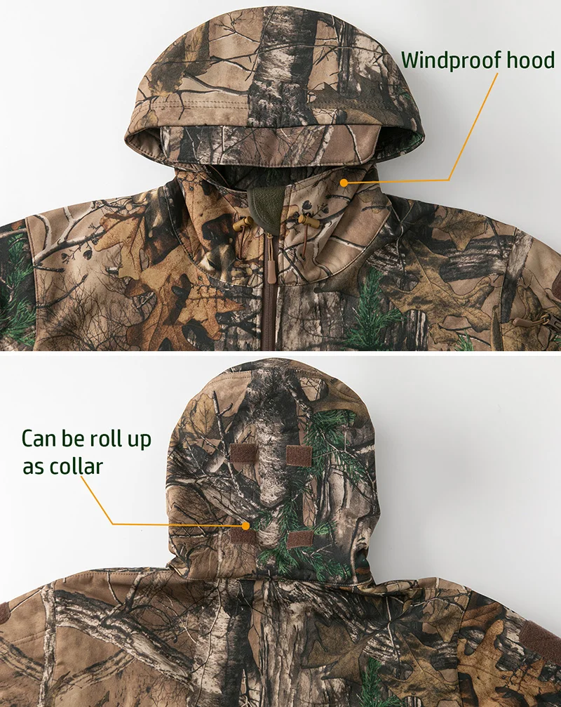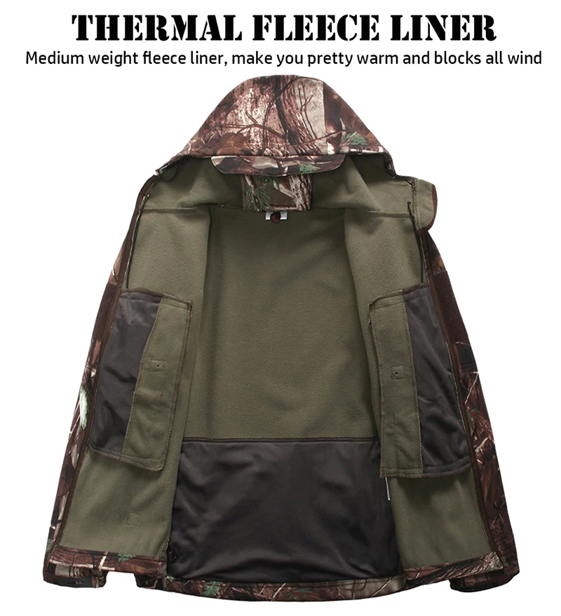 Feature: Waterproof, Windproof, Thermal, Soft Shell, Camouflage, Quiet for hunting