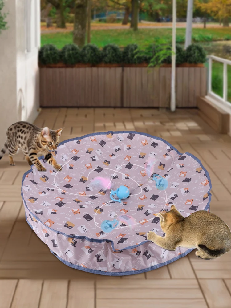 - Complete set includes hiding hunting cover, upgraded blue bouncing ball, bell, and feather accessory; cat-mat mode responds when your cat pats it for interactive play.
