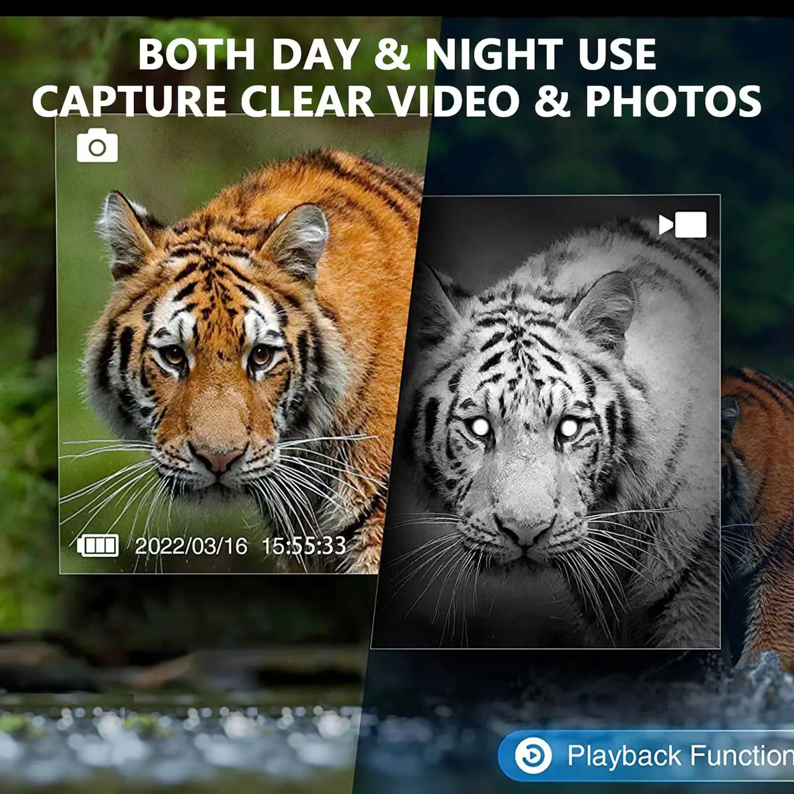 --Night Vision Monocular: Allows you to see animals or plants clearly in 100% dark or dim ambient light. It captures HD photos and videos with excellent optical clarity during the day, low light or night, and you can even take pictures with it.