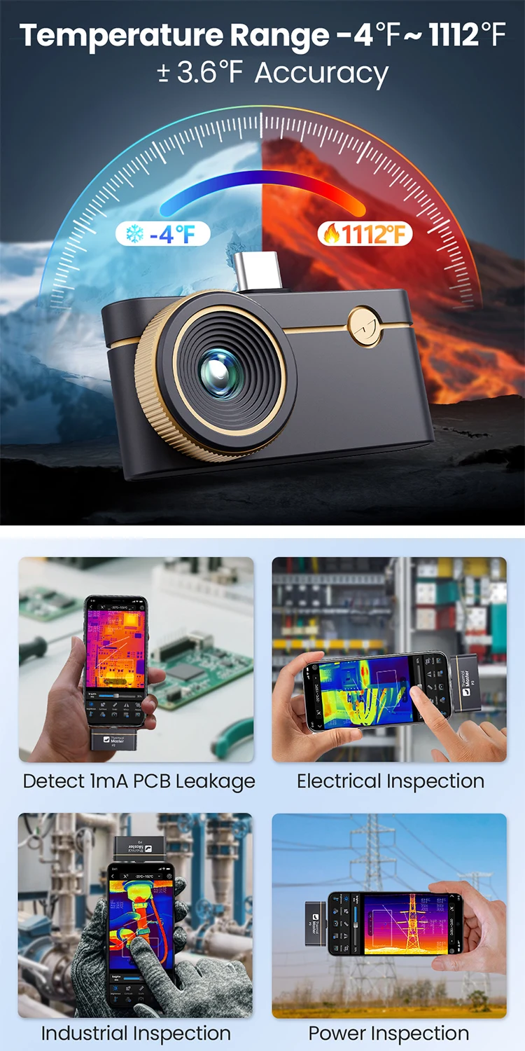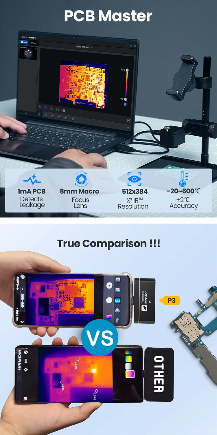 P3 Thermal Camera ios& Android USB-C 600℃ 512*384 X³IR Infrared imaging Camera Macro Lens for PCB Circuit Home Inspection