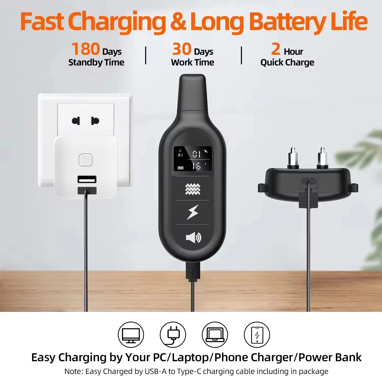 - Built-in rechargeable battery powers the collar for multiple training sessions per charge, minimizing ongoing costs and avoiding the need for disposable batteries.