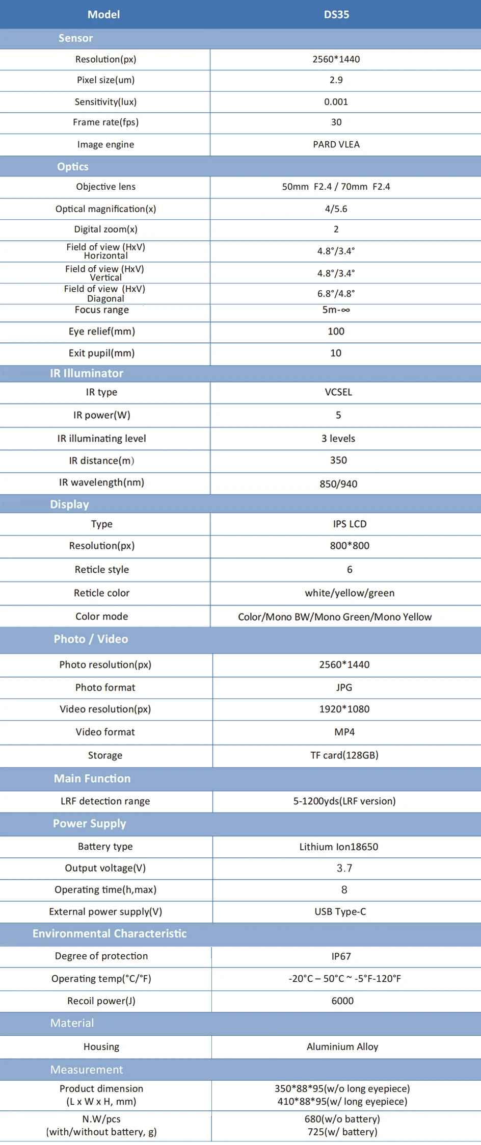 PARD DS35 LRF Night Vision Scope Hunting Rangefinder Optics Long Eye-relief Display System 2560*1440 Resolution With IR 350m New