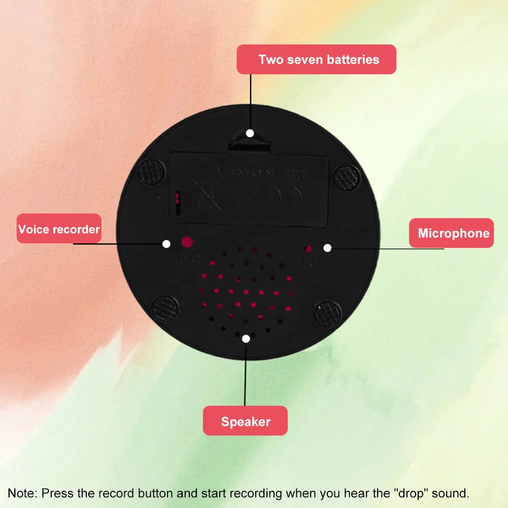 - Durable ABS construction: an 85×35 mm button with long-press recording and crisp playback, powered by two AAA batteries (not included).