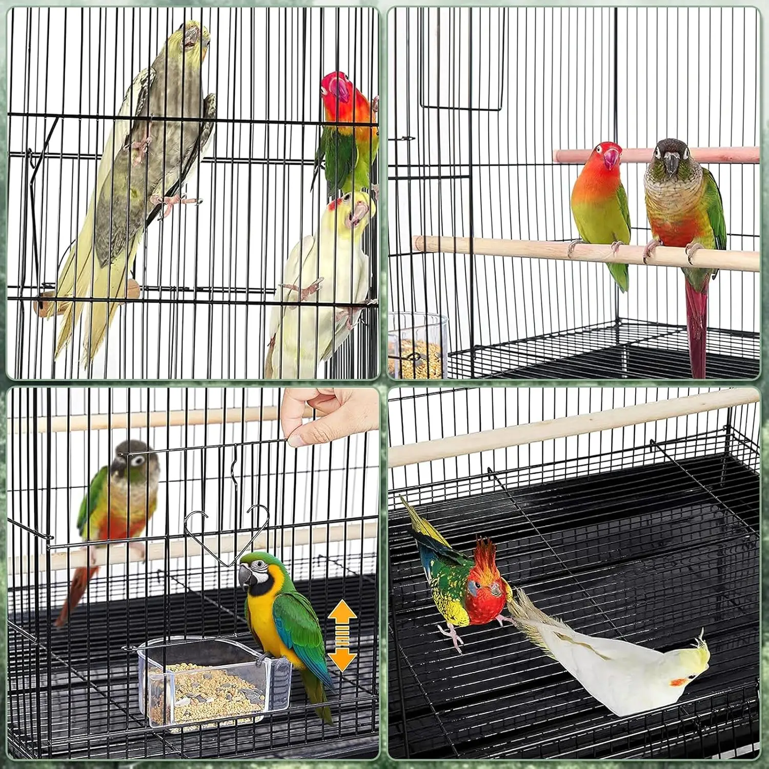 【Robust Metal Construction & Stability】Built with strong metal framing and rigid plastic components for exceptional durability and sturdy structure. Ensures long-lasting performance, resists warping, and provides reliable safety for your pets within this high-quality bird cage.
