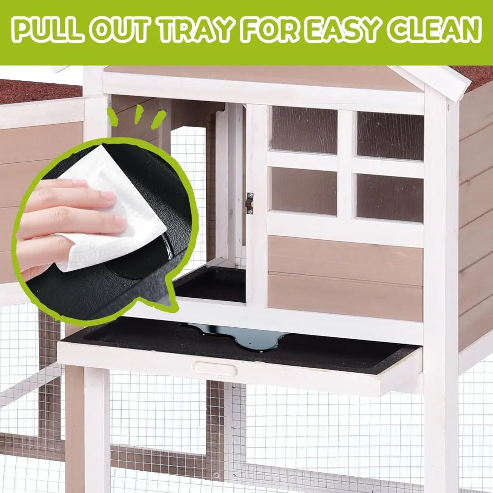 Wooden Rabbit Hutch Indoor Outdoor 2-Level Cage Pull-Out Tray