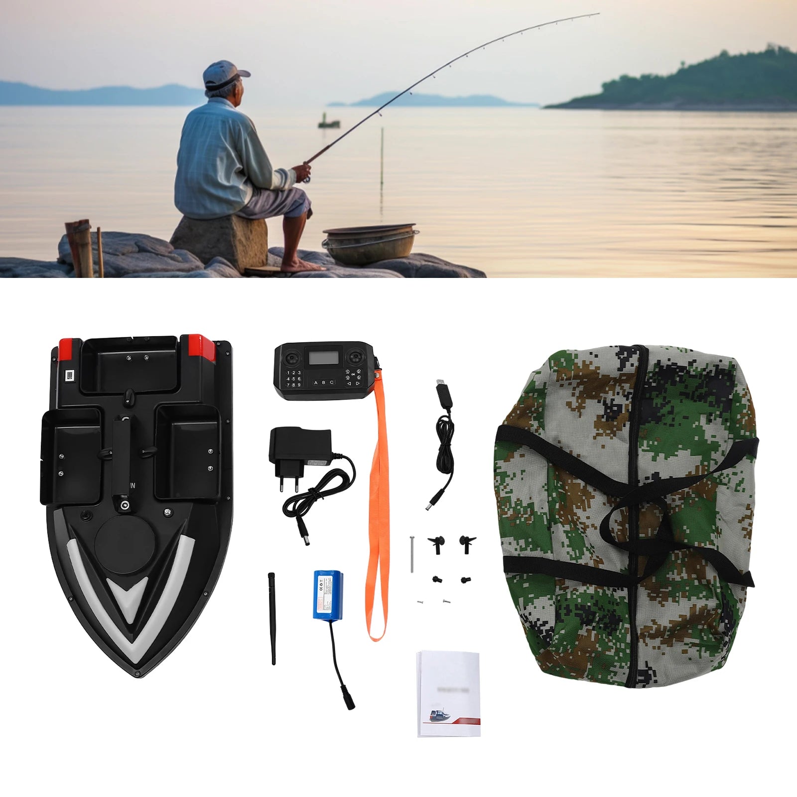 GPS 3-compartment fishing boat with 5200 mAh battery 1 + bag + USB