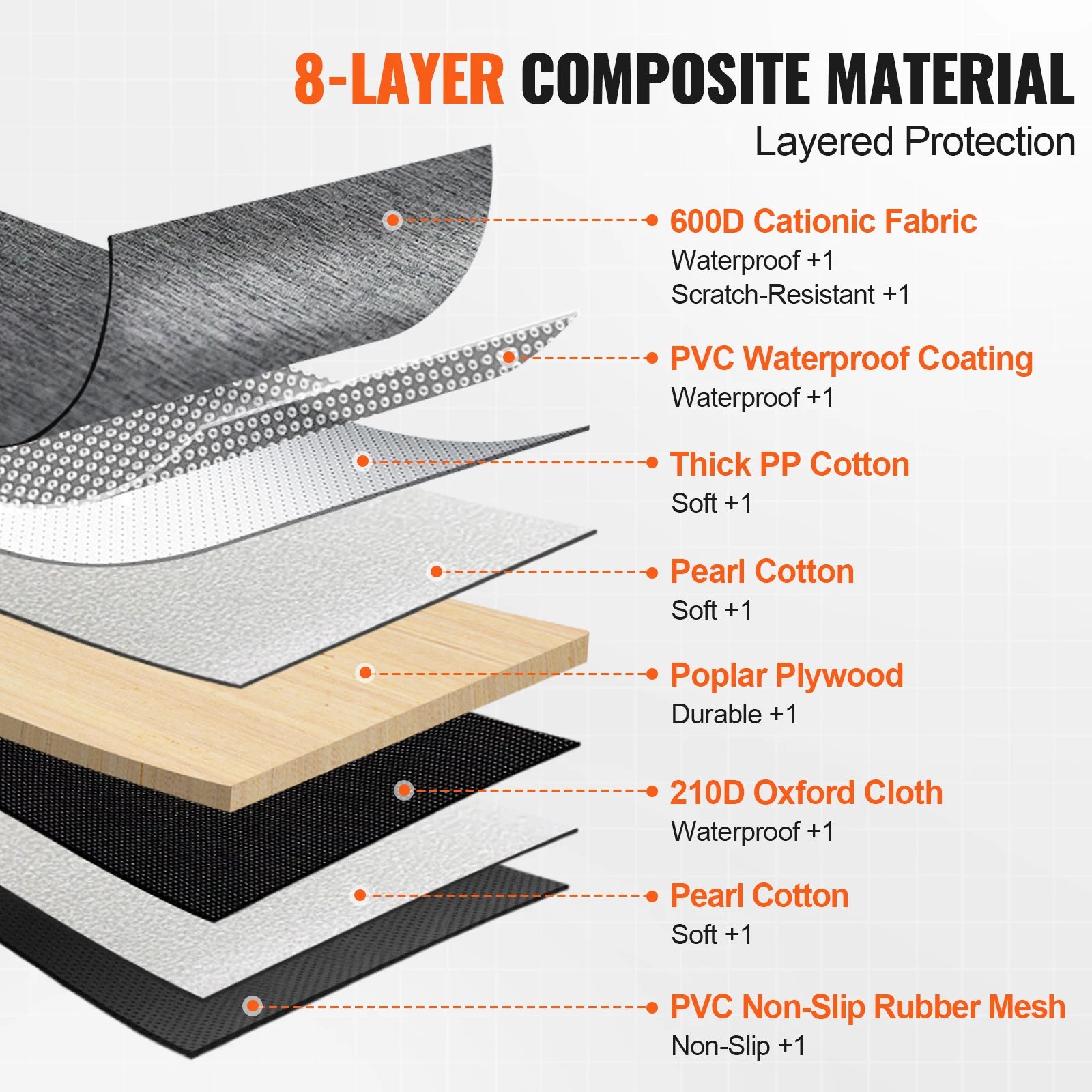 - Eight-layer construction pairs waterproof, scratch-resistant fabric with a rugged bottom to protect your car’s interior and endure daily trips, muddy paws, and occasional accidents.