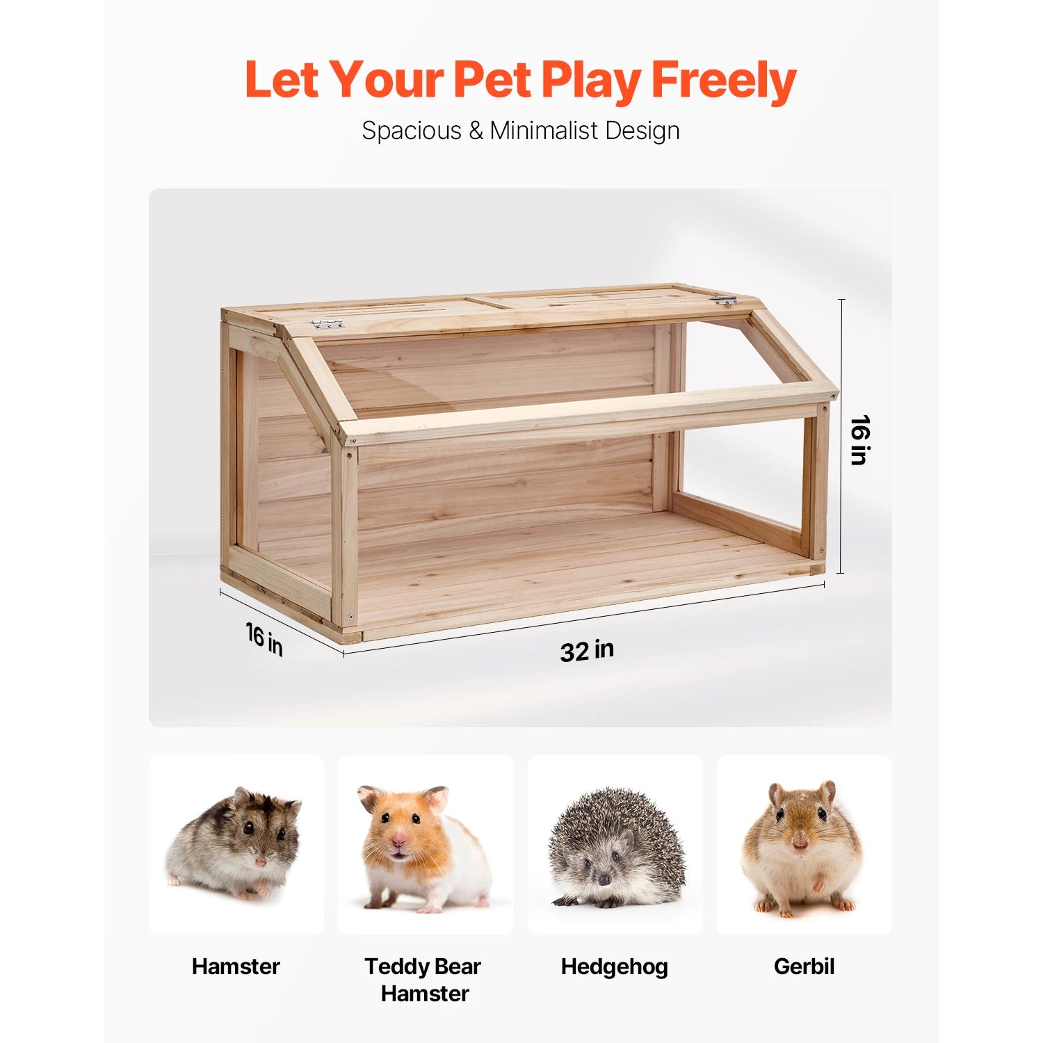 SucceBuy Wooden Hamster Cage 270 Degree Viewing Open Top Ventilated