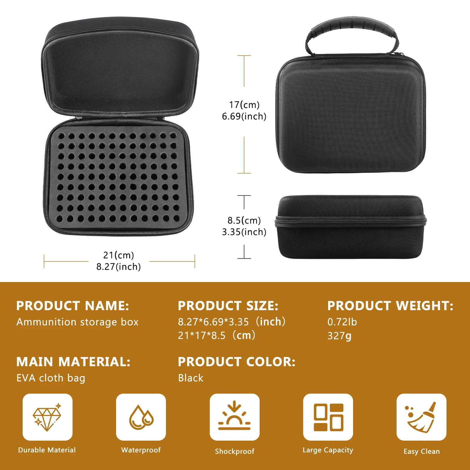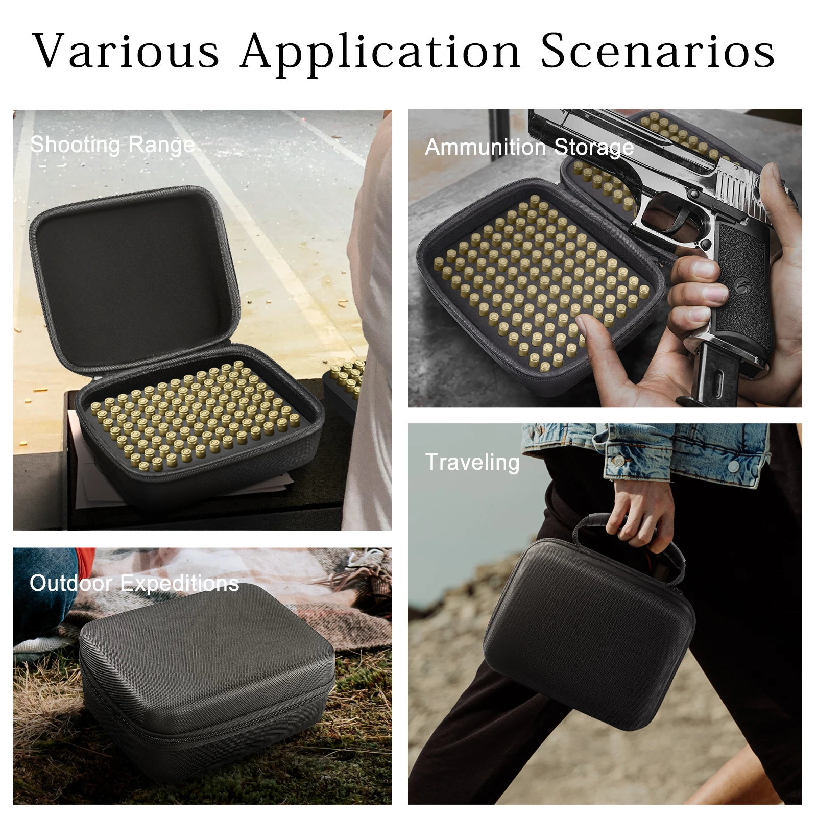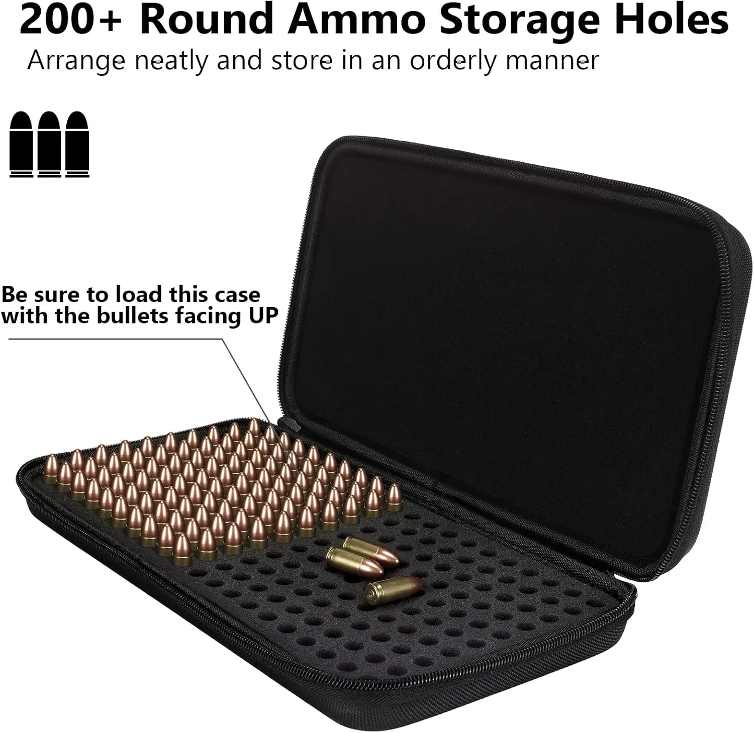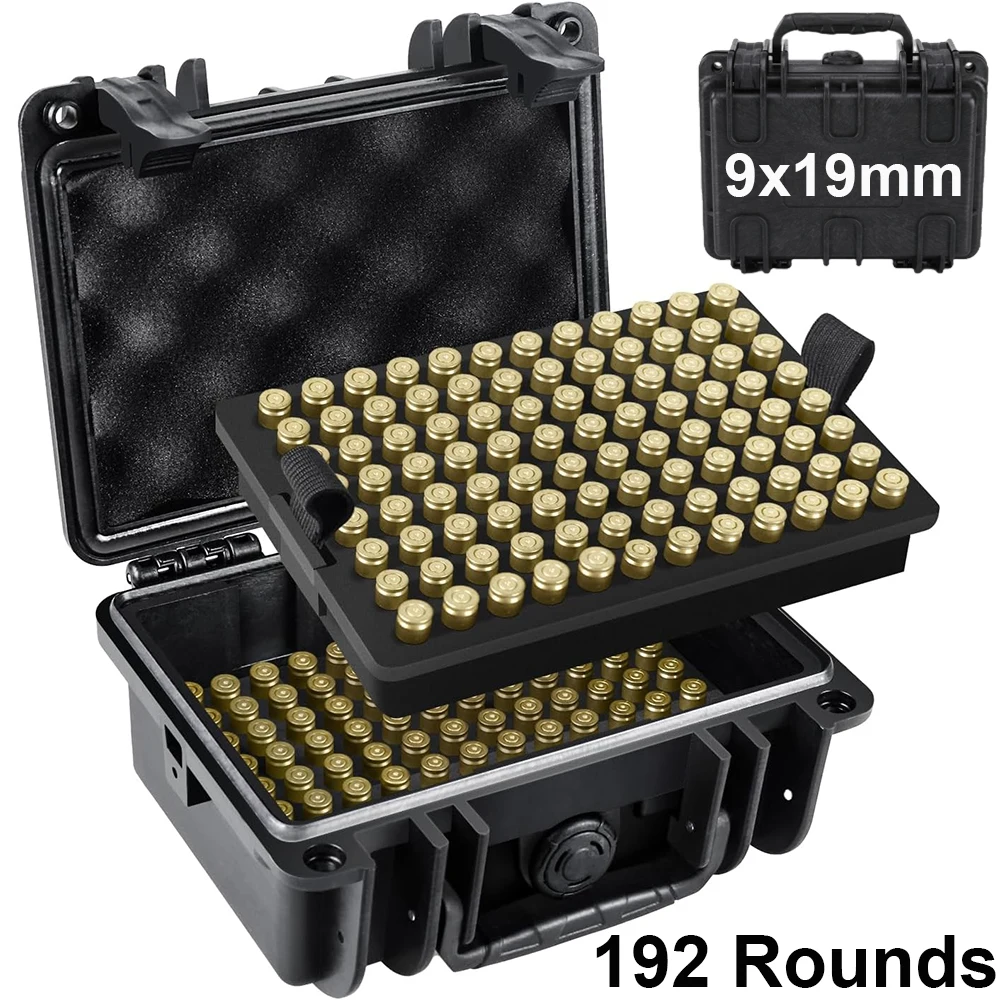 1.【High-Capacity Design】Capable of storing up to 192 rounds of 9x19mm Parabellum/9mm Luger ammunition. The bullets are secured by two high-density EVA trays, with the EVA foam layer featuring two handles for easy lifting of the upper tray to access the lower compartment, thereby doubling the storage capacity. A foam separator ensures that the ammunition does not come into contact with each other, providing an additional layer of protection for your rounds.