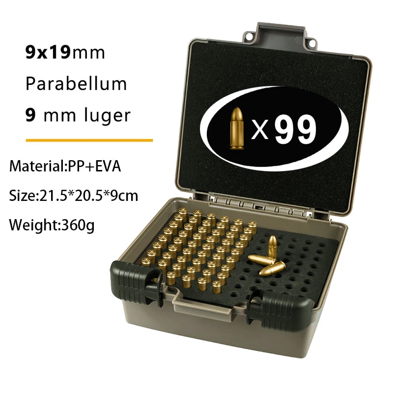 Tactical Ammo Case 9mm Ammo Box Ammunition Storage Case Bullets Holder 9x19mm Cartridges Case for Hunting Shooting Accessories
