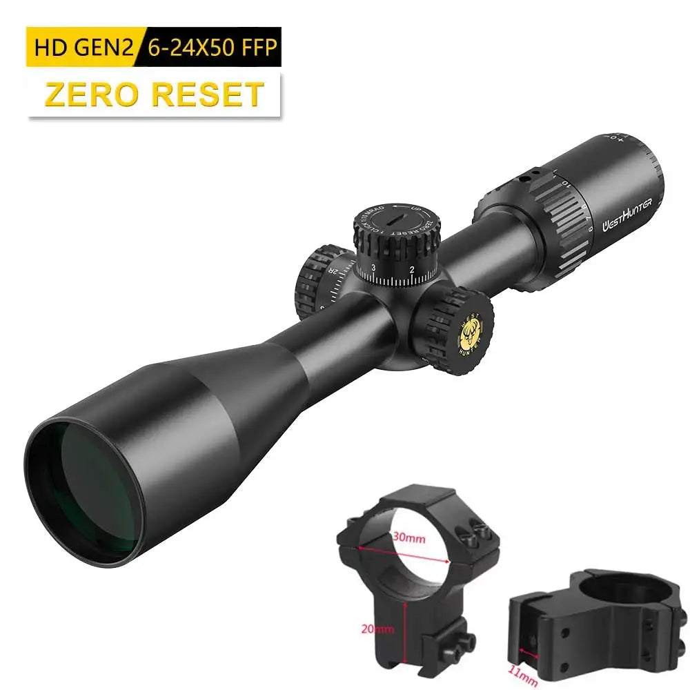 WestHunter HD GEN2 6-24X50 FFP Riflescope 1/10 MIL First Focal Plane Etched Glass Reticle Zero Reset/Zero Stop Optical Sight