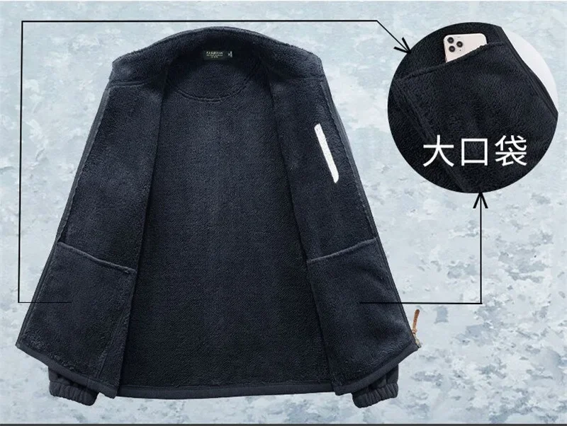 Winter Thicken Polar Fleece Jacket Warmth Windproof Full Zip Up Coat Multiple Zipper Pockets Outdoors Plus Size Jackets Outwear