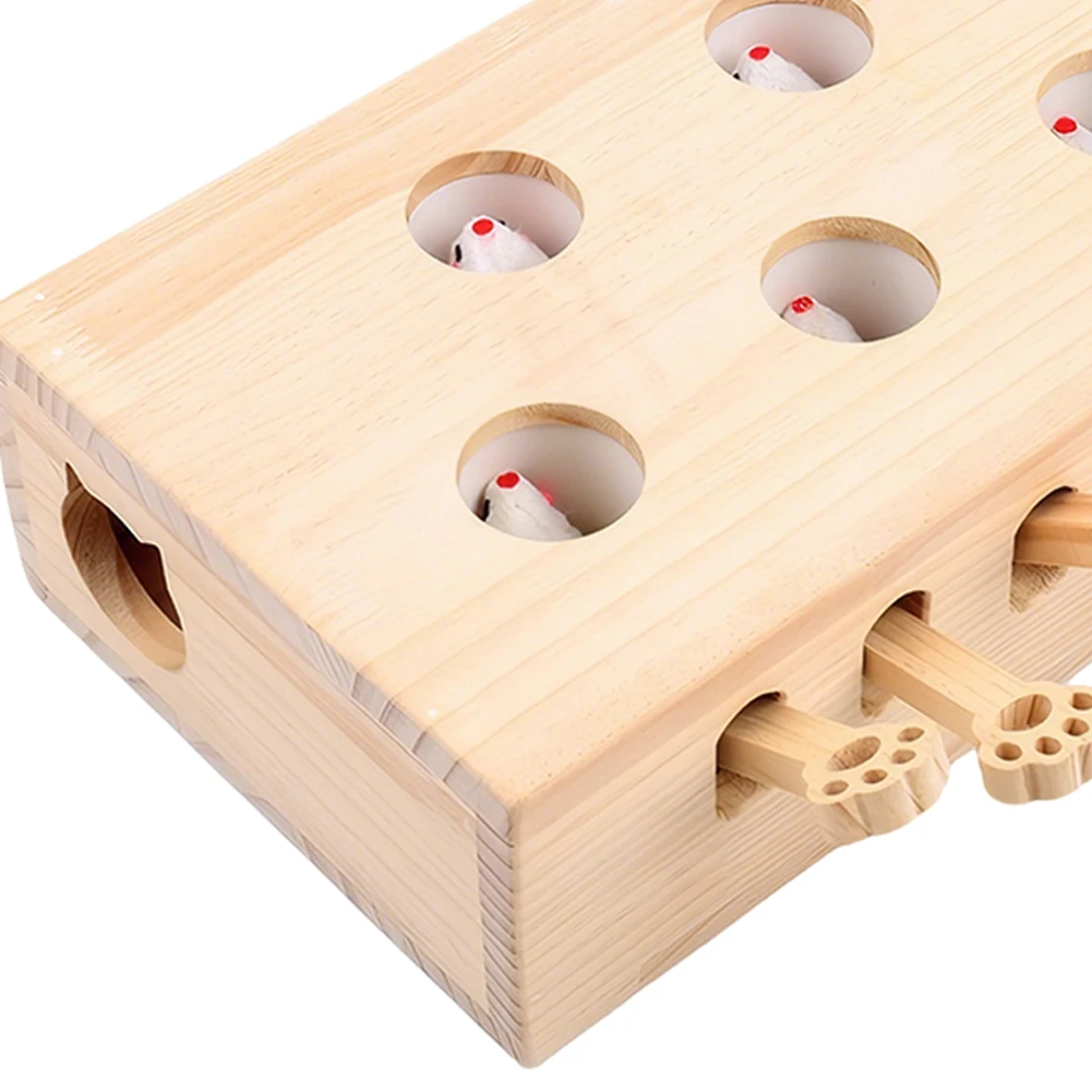 Alloyseed Wooden Whack A Mole Cat Toy Interactive Enrichment